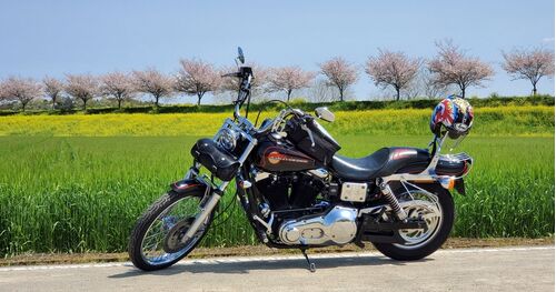 漸く愛車のダイナワイドグライドの修理が終わり先日受け取ってきました。 当日は暑い位の陽気で、服装をチョット失敗(暑すぎ、脱ぐための収納を用意せず)で バテ気味になりましたが、雨や寒いよりはマシか。 桜も咲いていれば、ではあるけれど綺麗で何人か…