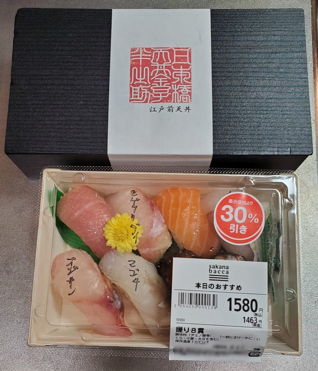 天丼だけで結構なボリュームでしたのでお寿司は翌日朝食で頂きましたが、