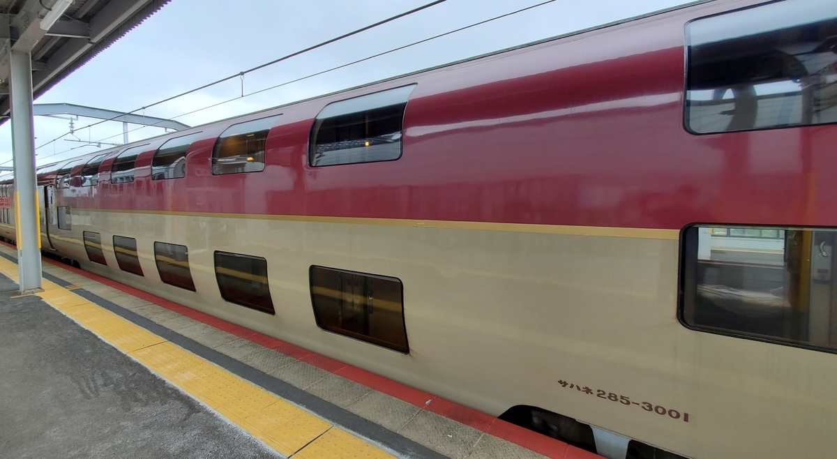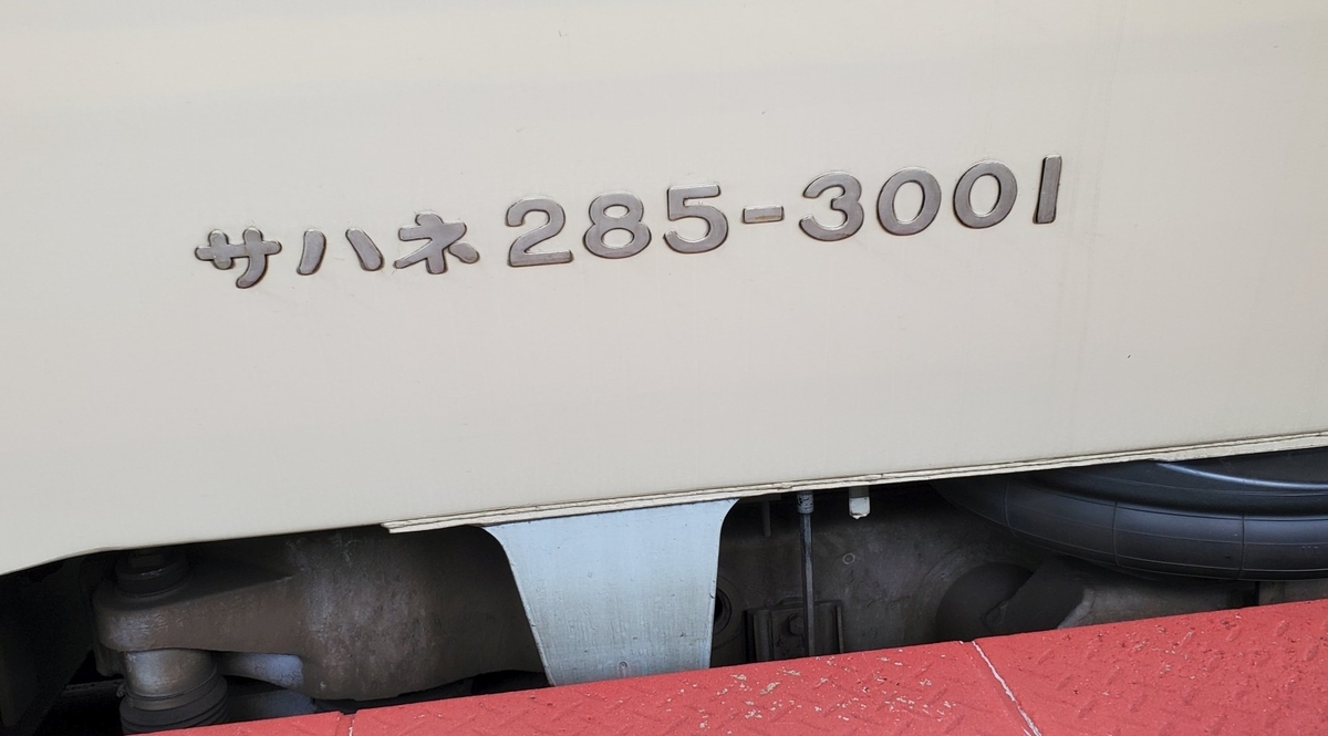 乗車しゃ13号車のサハネ285ー3001、トップナンバーなのも良し!!