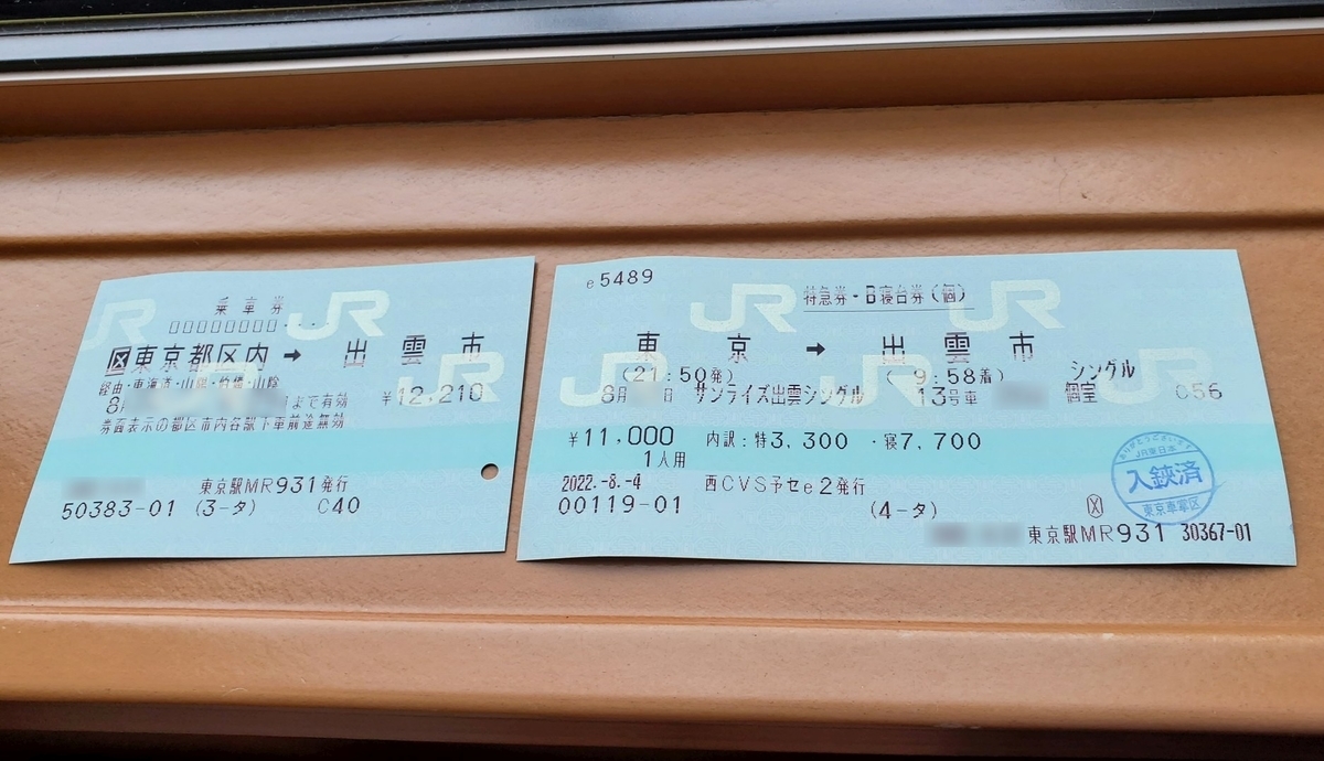 昨年位から中々思うような予約を取れずにいたサンライズ出雲での帰省をようやく実現できました。しかも、東京-出雲市間の全運行区間制覇です!!!