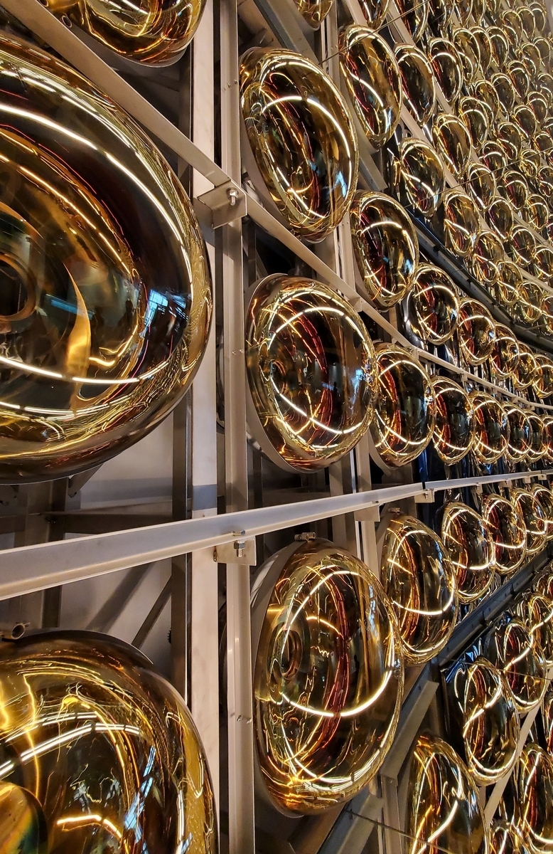 真ん中の3段は本物で上下は鏡で一面この観測管で埋め尽くされた姿を再現しています。