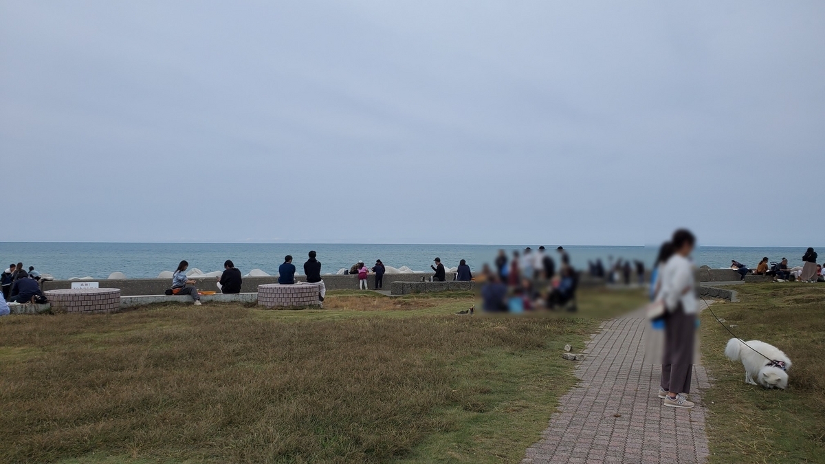 海岸側は広く公園になっています。こちらにも大勢の人がピクニックという感じで輪になっています。その中心に先ほどのカニが大量に!!!