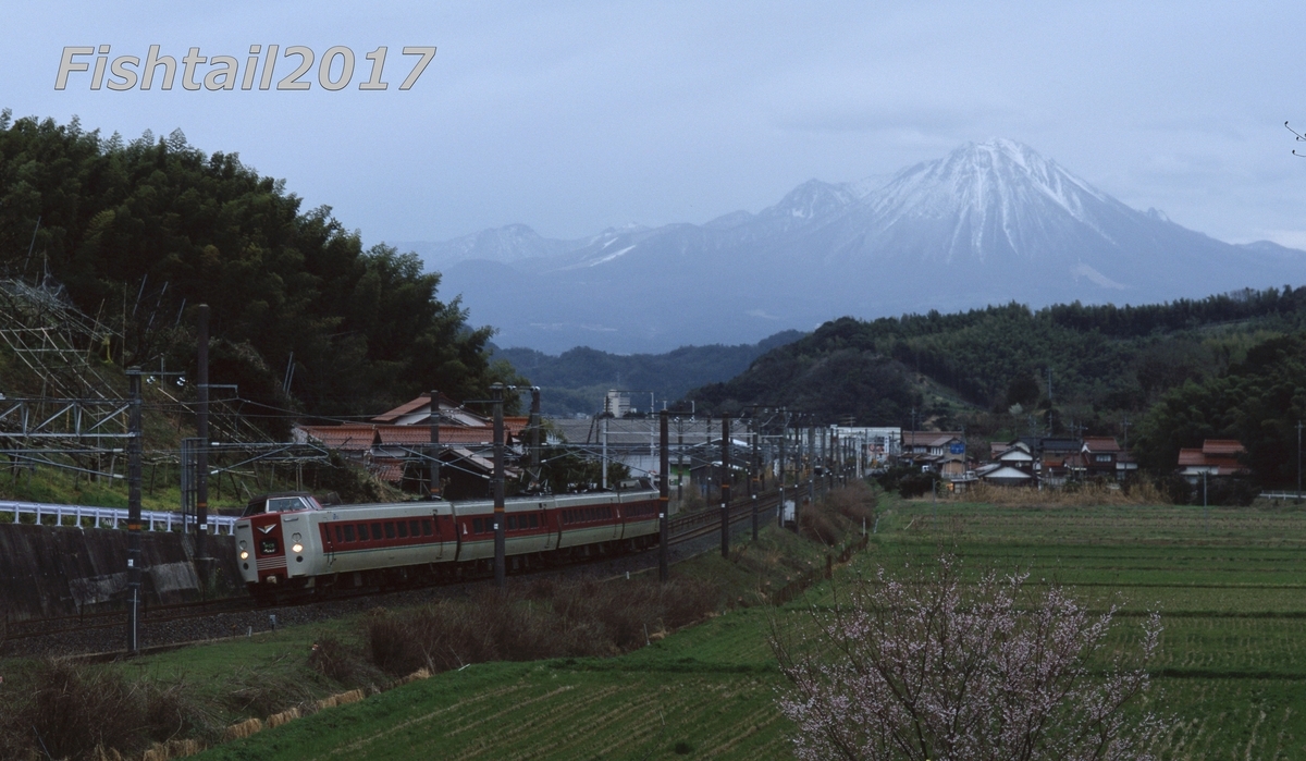 とりあえずは岸本付近で同業者がおられた場所に偶然遭遇、ここでやくも5号を撮影します。天気が悪いながらも大山の姿はハッキリと見えてくれたのが幸いです。