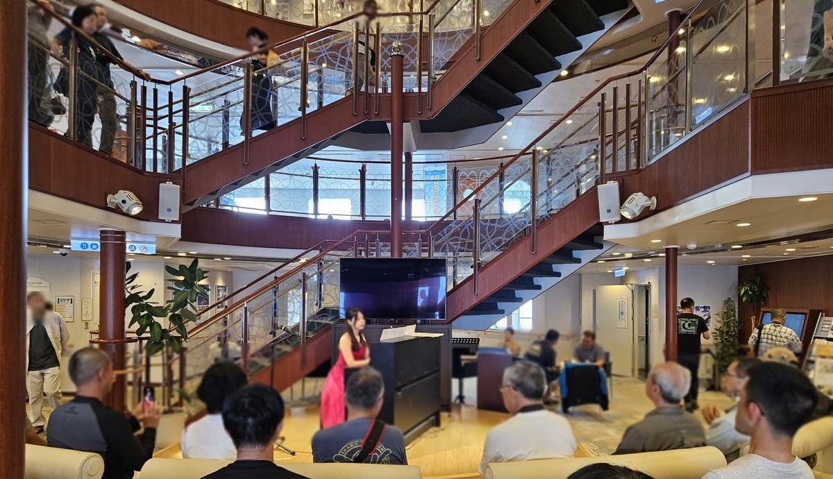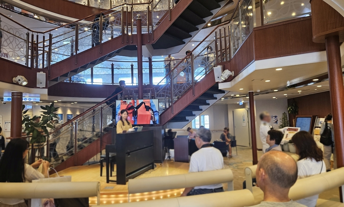 乗船すると綺麗なおネイサンがピアノ演奏してました。