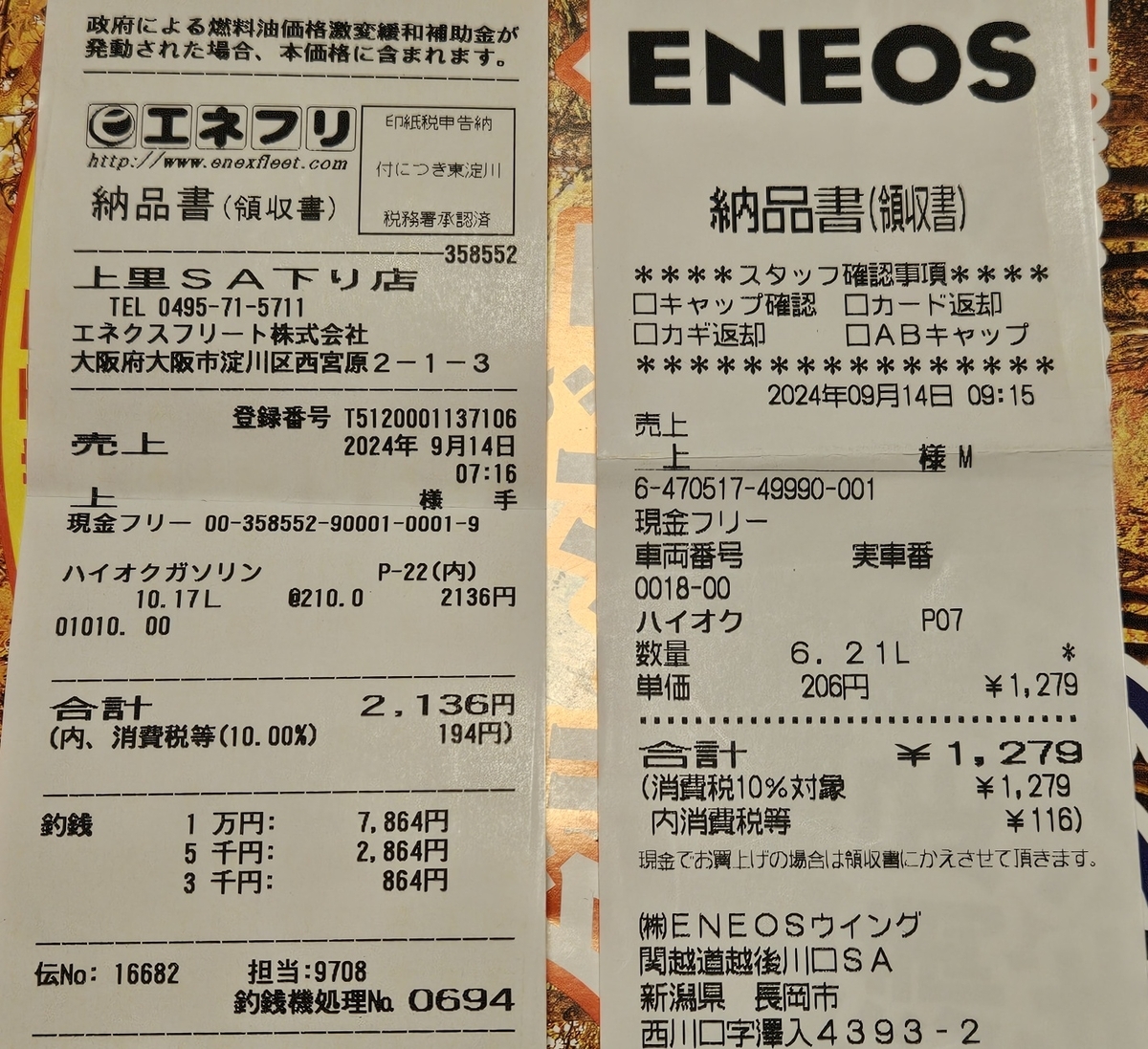 今日はこの上里SAと越後川口SAの2回満タンにしています